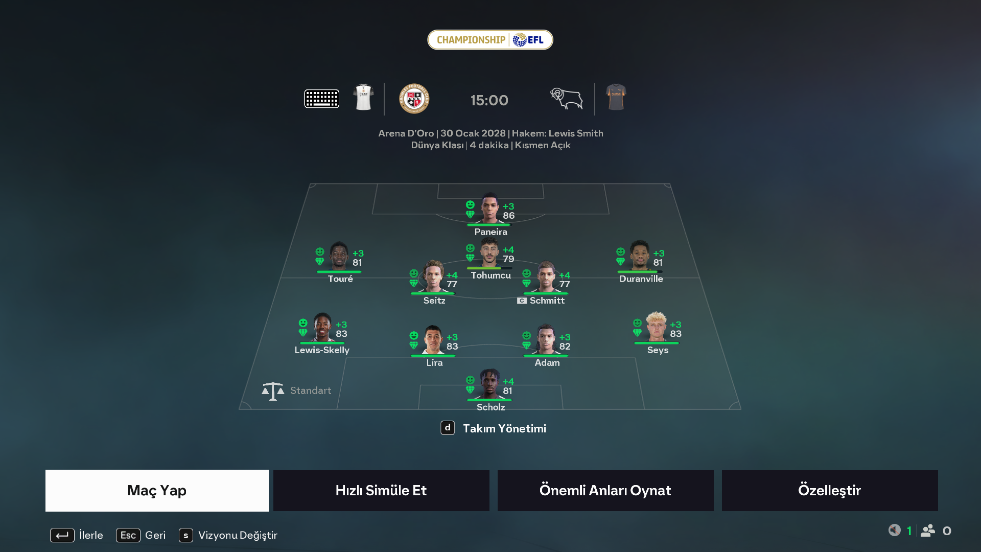 However, after I press “OK” and enter the match, all the changes I made in the “Team Management” menu using the “D” button are reset, and I end up starting the match with the “Default Squad” that I set in the main “Squad” menu of Manager Mode.