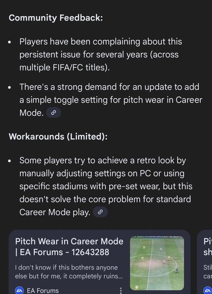 Can we please, please, have an option to turn pitch wear off in Career Mode? Please?! This has been immersion breaking for so long. I spend hundreds of hours on Career Mode every year, is it really too much to ask?