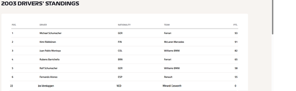 2003 was one of the most dramatic and unpredictable seasons of the early 2000s, a break in the Ferrari dominance and full of unique storylines. It featured legendary names like: