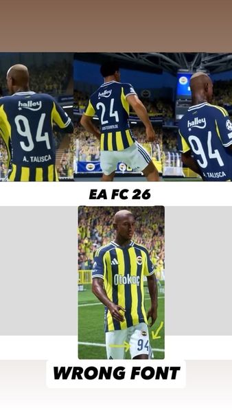 Ideally, the authentic Arial Rounded font should be used in-game. If, for licensing reasons, the exact font cannot be implemented, please revert to the previous EA FC 24/25 font style used for Fenerbahçe, which looked much closer to the real design. Ensure that in UEFA competitions, the correct placement is applied (name above number), while in the Süper Lig it remains reversed. Why This Matters; EA FC 26 highlights authenticity as one of its main focuses this year. As Fenerbahçe is fully licensed, fans expect the same level of detail as other licensed European clubs. Correcting these details would significantly improve immersion and realism for players.