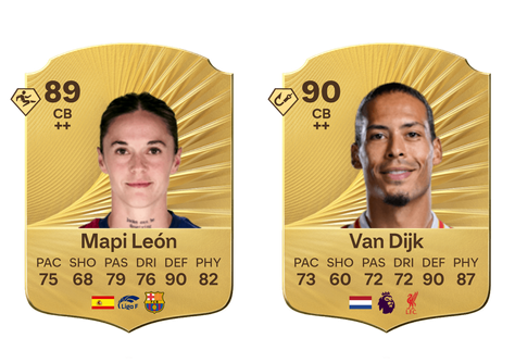 To illustrate this absurdity, consider the comparison between Mapi León (89 OVR) and Virgil van Dijk (90 OVR). Both play in the exact same position: (CB). Yet, the data tells a conflicting story.