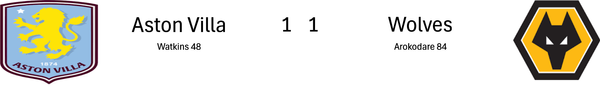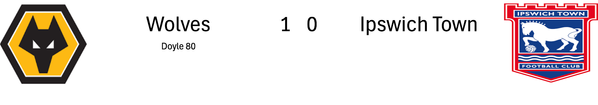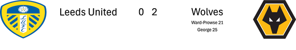 Wolves (4-3-3): Agirrezabala, Garcia, Goes, Krejci, Wolfe, Florentino, Ward-Prowse (Off 61), Gomes (Off 61), Esse, Arokodare, George (Off 61)