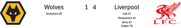 Arne Slot “The way we work off the ball, the way we can go from defence to attack in the blink of an eye and our determination. Wolves are a very good team and we made them look average today because we fought for every ball and when we had the ball every time we went forward we looked like scoring we could have had a couple more on another day. It was a huge result now we are top of the table after a slow start and we aim to stay there.”
