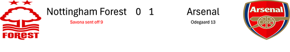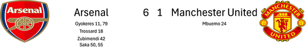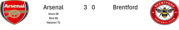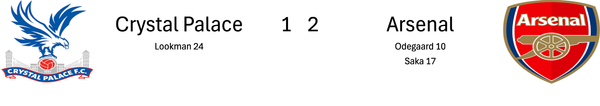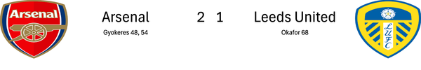 Subs: Raya, Mosquera, Gabriel, Eze, Nwaneri, Martinelli, Merino, Jesus, Bouaddi