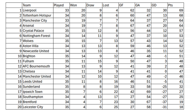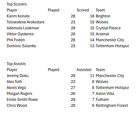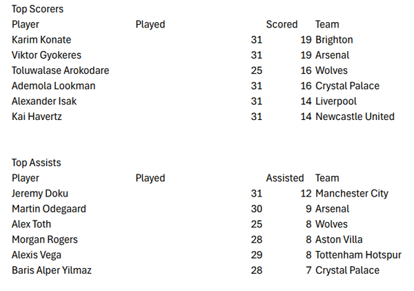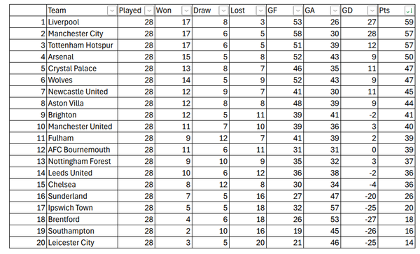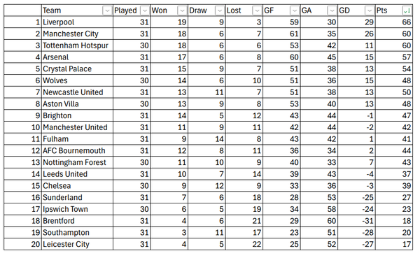 Great start as Arsenal manager. Especially the Palace win, keeping them - and former club Wolves - behind you in the race for top 4. Defensively the team has improved too, now with 5 teams having conceded more. Hate to see Man United so low though - and their two rivals on top. Where's the unfollow button? 😉