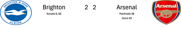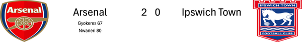 Arsenal (4-3-3): Raya, Laimer, Saliba, Pienczak, Lewis-Skelly, Zubimendi, Rice, Odegaard (Off 75), Saka, Gyokeres (Off 75), Newaneri (Off 75)