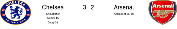 Subs: Kepa, Kayode, Mosquera, Bouaddi, Larsson (On 75), Eze (On 75), Martinelli, Trossard, Jesus (On 75)