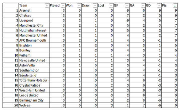 Opening game a bit slow, but otherwise a perfect start in the new season with 9 points and 3 clean sheets. It seems your former club Wolves had a tough day at the office. Solid overview of matches in the league + CL. Atlético, Bayern and Barcelona will be tough, but the rest are teams you should beat more often than not.