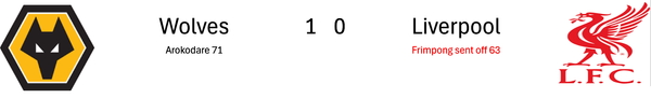 Consecutive 1-0 wins including one against Liverpool. Things are beginning to improve for Wolves. Reminds me a bit of their spring form, struggling in 17th, then suddenly to win 6 in a row, climbing to 13th or so.