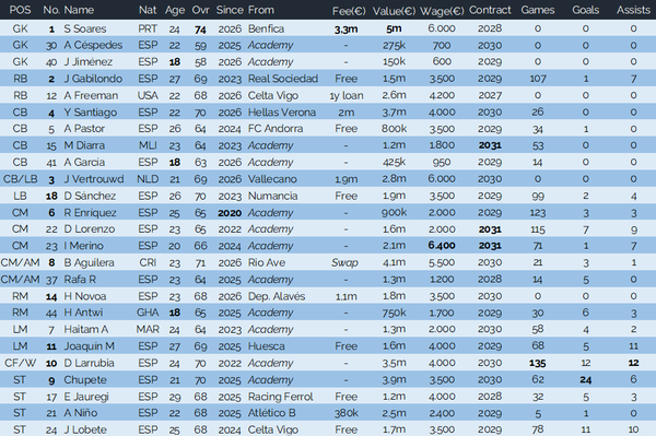 Strong start to the season gutting to concede that equaliser at the end of your opening game but the team responded well with back to back wins especially beating Elche who will surely be up there at the end of the season. Home results will be key and 1 win and 1 draw isn't the worst start and Away its about keeping it tight and picking up wins