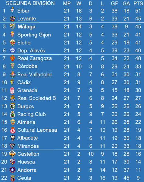 3 wins for Eibar, now on 46 points. Málaga are only 3rd with 38 points, the same as Levante, who take 2nd place with the better head to head record despite a worse goal difference. Surprised to see this being the case in a regular league system like this...