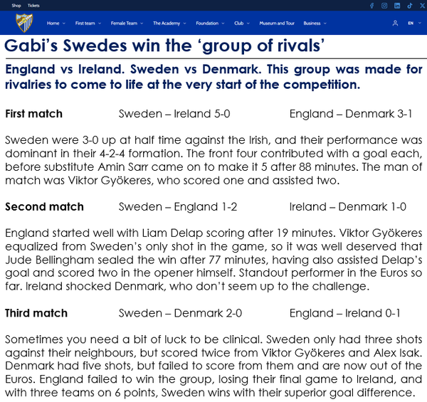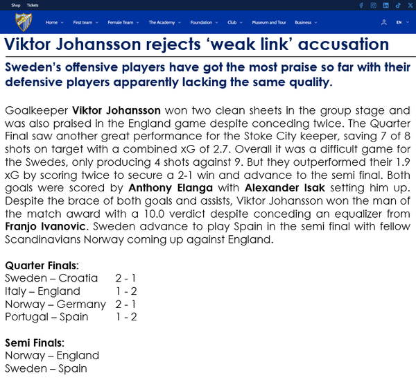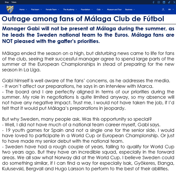 Interesting decision to join Sweden for the Euros with a massive season pending for Malaga lets hope you get off to a good start otherwise the fans will be even more furious.