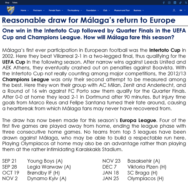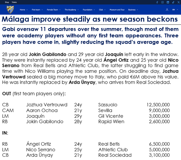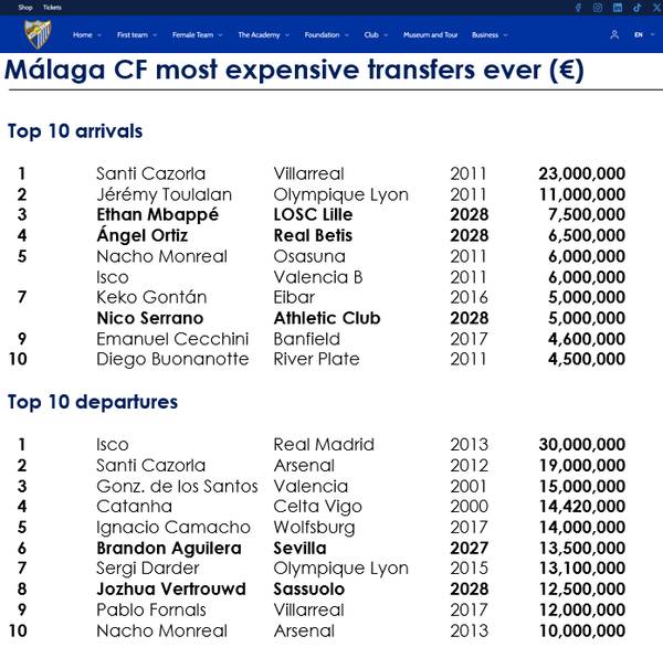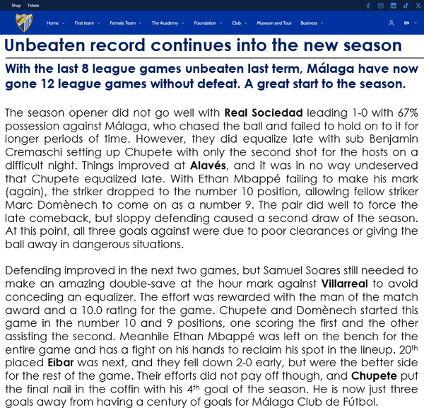 Chuoete really proved them doubters wrong in January there were calls for him to be dropped to end with 21 goals lets hope Malaga can keep him. A fifth placed finish is absolutely superb as well as a final in Copa Del Rey it will be interesting what happens this summer the club will need to strengthen so that it can compete on two fronts with the Europa League games also being taken into consideration how much will they invest though.