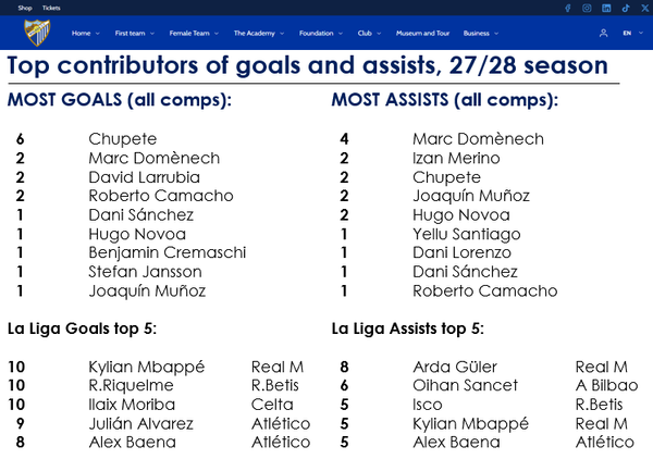 Indeed. A decent run so far for Chupete despite not keeping his +1 goal per game rate from last season (didn't expect him to). However, as you'll see in my next update, perhaps the team has relied too heavily on Chupete, making it a bit too predictable at time, often playing better without him in a more fluid and dynamic attack. Perhaps I have some hard choices ahead.