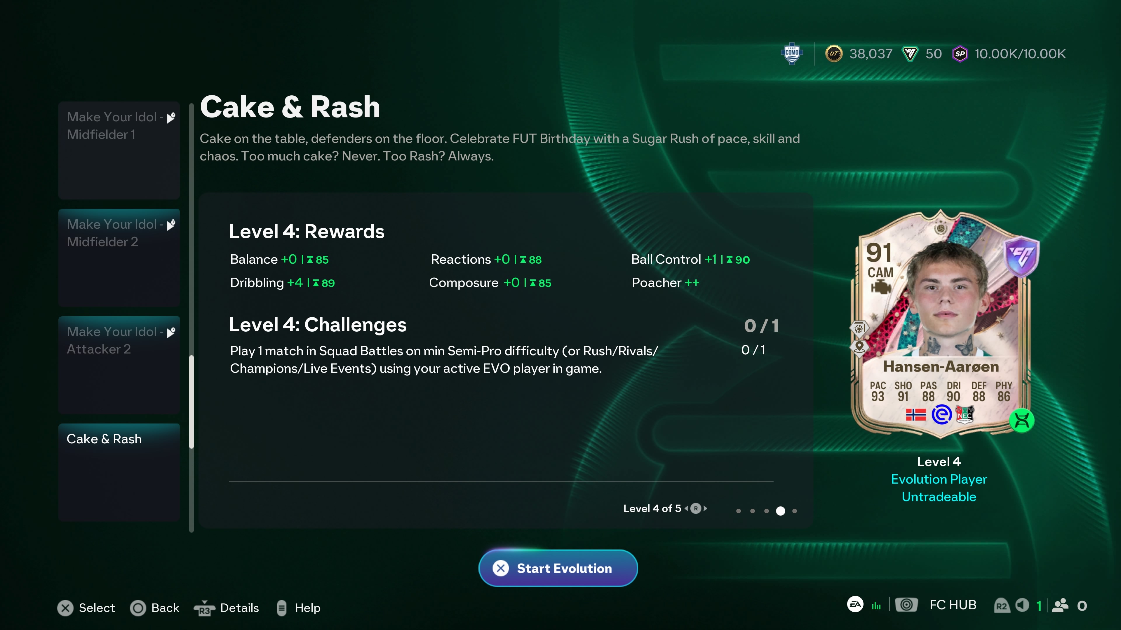 Ich hab eine Frage und zwar wenn ich meinen Spieler in die Cake&Rash Evo stecke berkommt er im letzten Level die "fut birthday evo" seltenheit. Der Spieler hat ist aber eine "Fantasy Captain Icon" und braucht das für meine Team chemie. Normalerweise kann man ja einfach die Evo bis zum letzen Level spielen und sie einfach auslaufen lassen. Aber dadurch sie ja im shop gekauft ist, hat sie keine Zeitliche Begrenzung und man kann sie nicht auslaufen lassen. Normalerweise wärs ja egal ob er danach einfach für immer in der Evo fest steckt aber ich hoffe dass er in Zukunft noch in weitere evos passt und würde ihn sehr ungern "aufgeben".