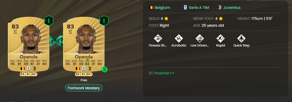 If you put Openda into Footwork Mastery evolution, he doesn't get a trickster playstyle, as he is reaching the upgrade limit of 5 playstyles. See screenshots below from FUTBIN.