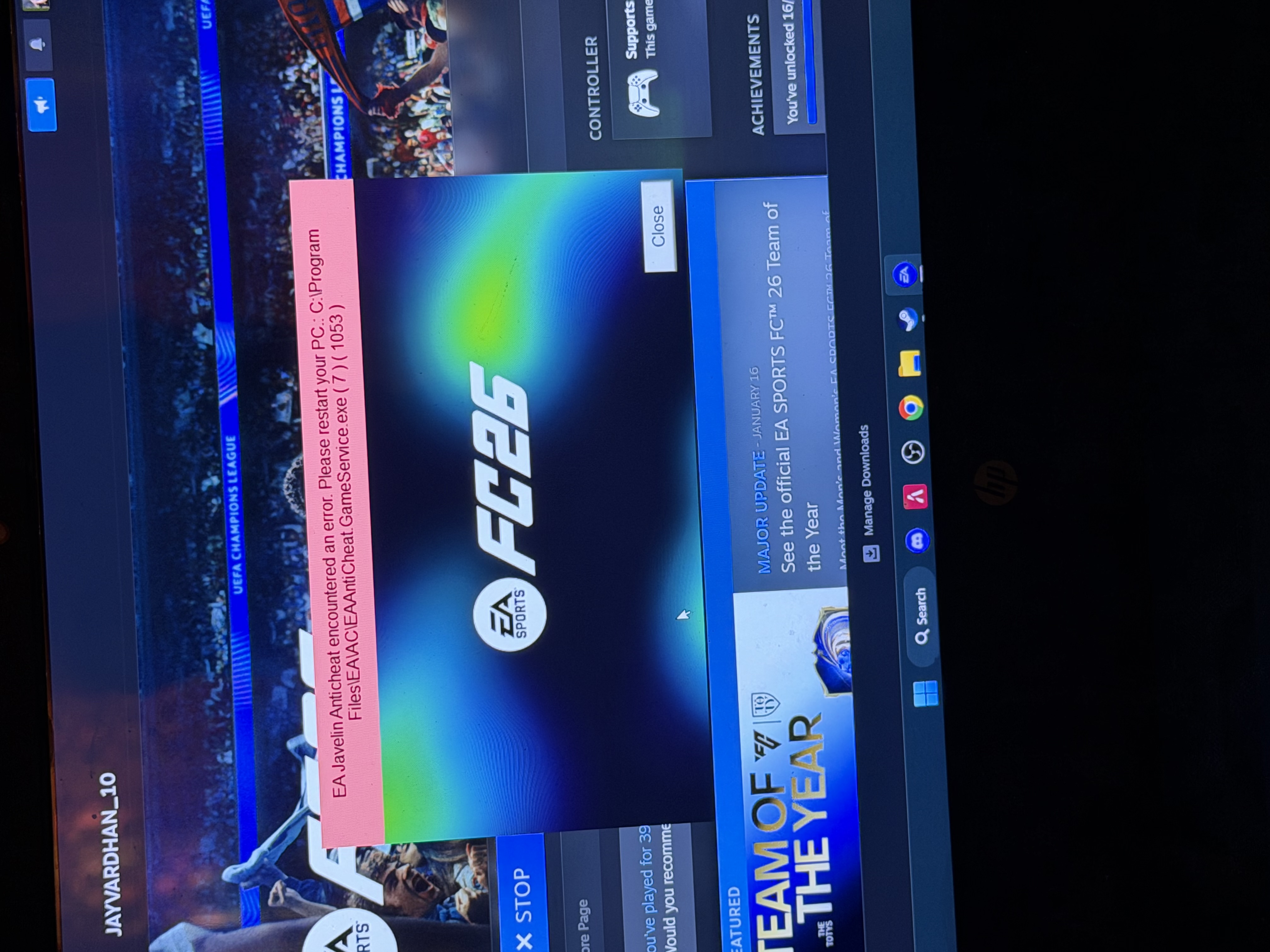 I’ve already tried every troubleshooting method I could find across EA help articles, and community guides — including reinstalling the game, repairing files, reinstalling anti-cheat, running as administrator, checking system settings, and other common fixes — but nothing has worked. The problem still continues exactly the same.