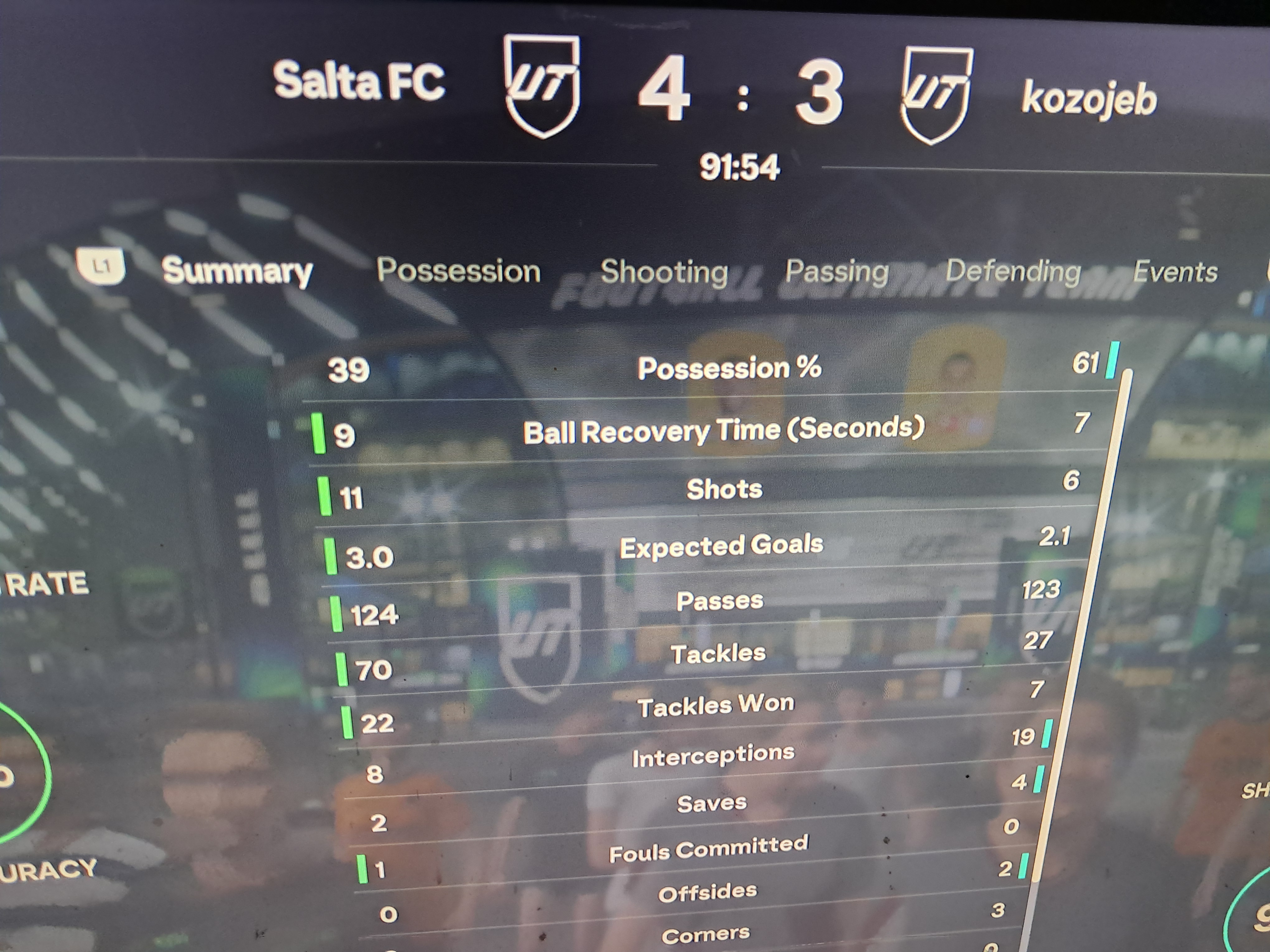 Ea, i wona to investigate mind account.ps5 user pcele pcele.Mind opponents have legacy defense.Mind defdnders are runnning away.Gam look like this.Opponent launch 105 tackles, he hit 28 tackles.I launch 10 tackles win 7.Opponent cant overcommit.I cant win match in last division.I was division1 in fifa18,21,23,24.