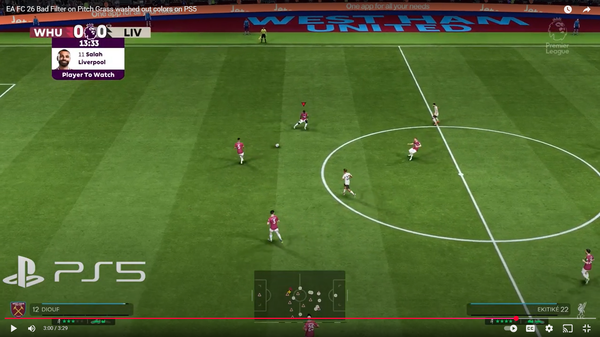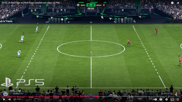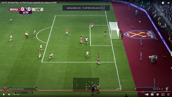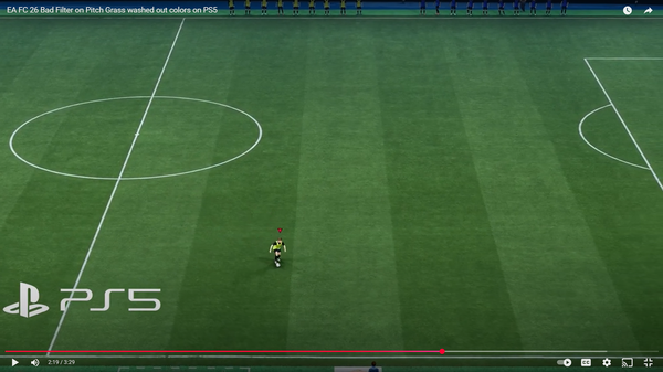 I’ve been playing FC games for years using the default Tele camera. In FC 26, I noticed that the grass color and mowing pattern look uneven from the bottom to the top of the screen. The upper side of the pitch appears completely washed out, and the striped grass pattern is almost invisible.