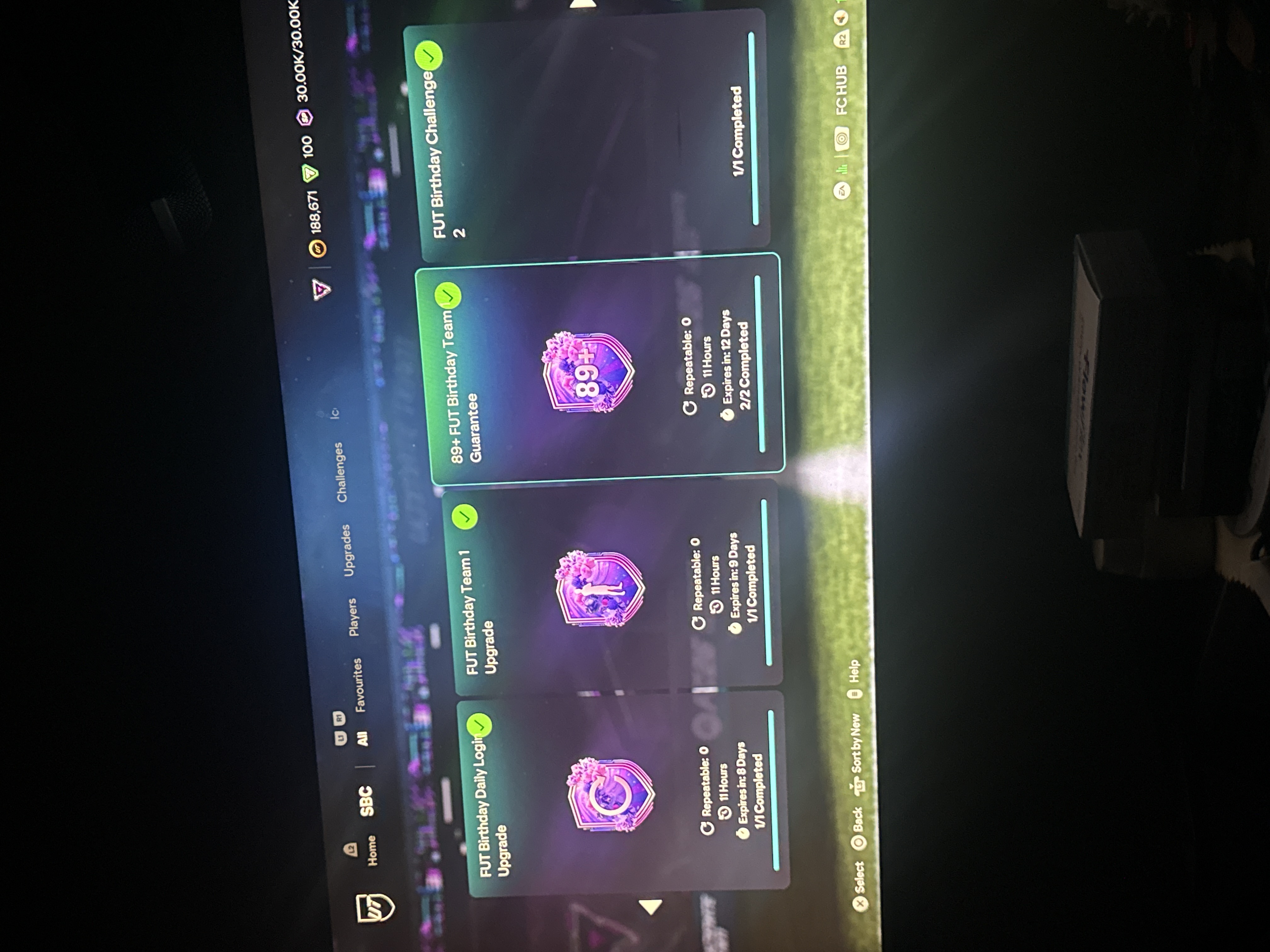 So guys I’ve been doing SBC for about an hour now, and for some reason after I submitted the SBC for the “1 of 3 88+ campaign mix player pick”, and the “ Fut Birthday Challenge 2”. I got the message that they had been completed, yet it’s been an hour and I still haven’t received them. I also noticed that every SBC I completed has a picture or something as like a cover, however the “FUT birthday challenge 2” has no cover image like the others. Is anyone else experiencing this?
