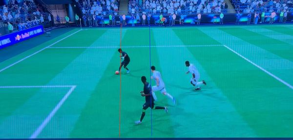 Final Decision, No Offsides! Player passing the ball is level with the second to last defender