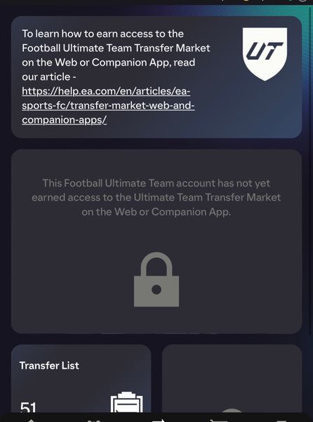 same thing. I've completed all the objectives necessary to "access the transfer market" and waited 3 days on ps5, should only be supposedly 24 hours but nothing still. Brand new account as I switched consoles, have active days built up every day so idk exactly what else I have to do or how much longer I have to wait for no apparent reason. I can't sell my players too which is so stupid cause I packed 50k worth of tradable players from MMs an I can't profit from it cause im on a new account..? ea has to address this issue fast cause I get the whole scamming thing in the transfer market but waiting 3 days after paying actual money just to not be able to access the full experience of the game after doing the unnecessary necessities (objs to unlock TM) is so backwards to me.