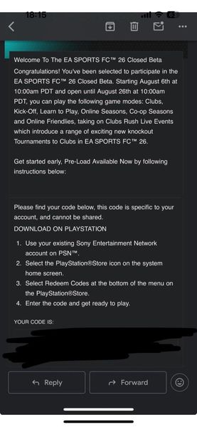 Il y a un outil sur le site EA Help qui vous redonne votre code si besoin à priori : https://help.ea.com/fr/articles/ea-sports-fc/closed-beta/