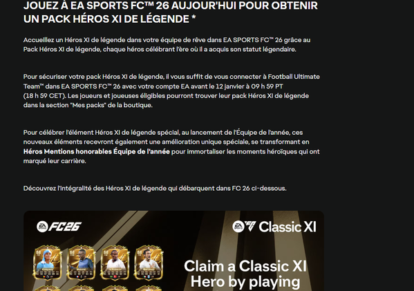en se connectant entre le 12 décembre et le 12 janvier , on devait recevoir un pack Classic XI HÉROS mais à ce jour je n’ai toujours rien reçu