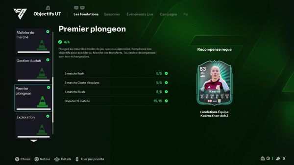 Dans les objectif fc 26 « les fondations » je complète « pro en devenir » qui demande de terminer tout les groupe d’objectif fondations mais après avoir fini « exploration » j’ai eu les récompense et la validation mais dans « pro en devenir » il n’es pas afficher comme remplis ce qui m’empêche de recevoir les récompense final HELP
