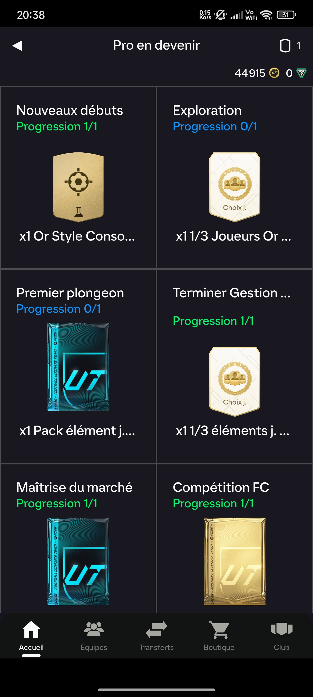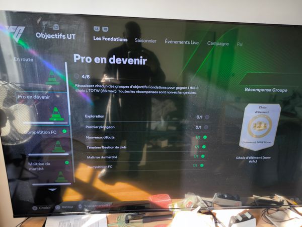 Dans les objectif fc 26 « les fondations » je complète « pro en devenir » qui demande de terminer tout les groupe d’objectif fondations mais après avoir fini « exploration » j’ai eu les récompense et la validation mais dans « pro en devenir » il n’es pas afficher comme remplis ce qui m’empêche de recevoir les récompense final HELP