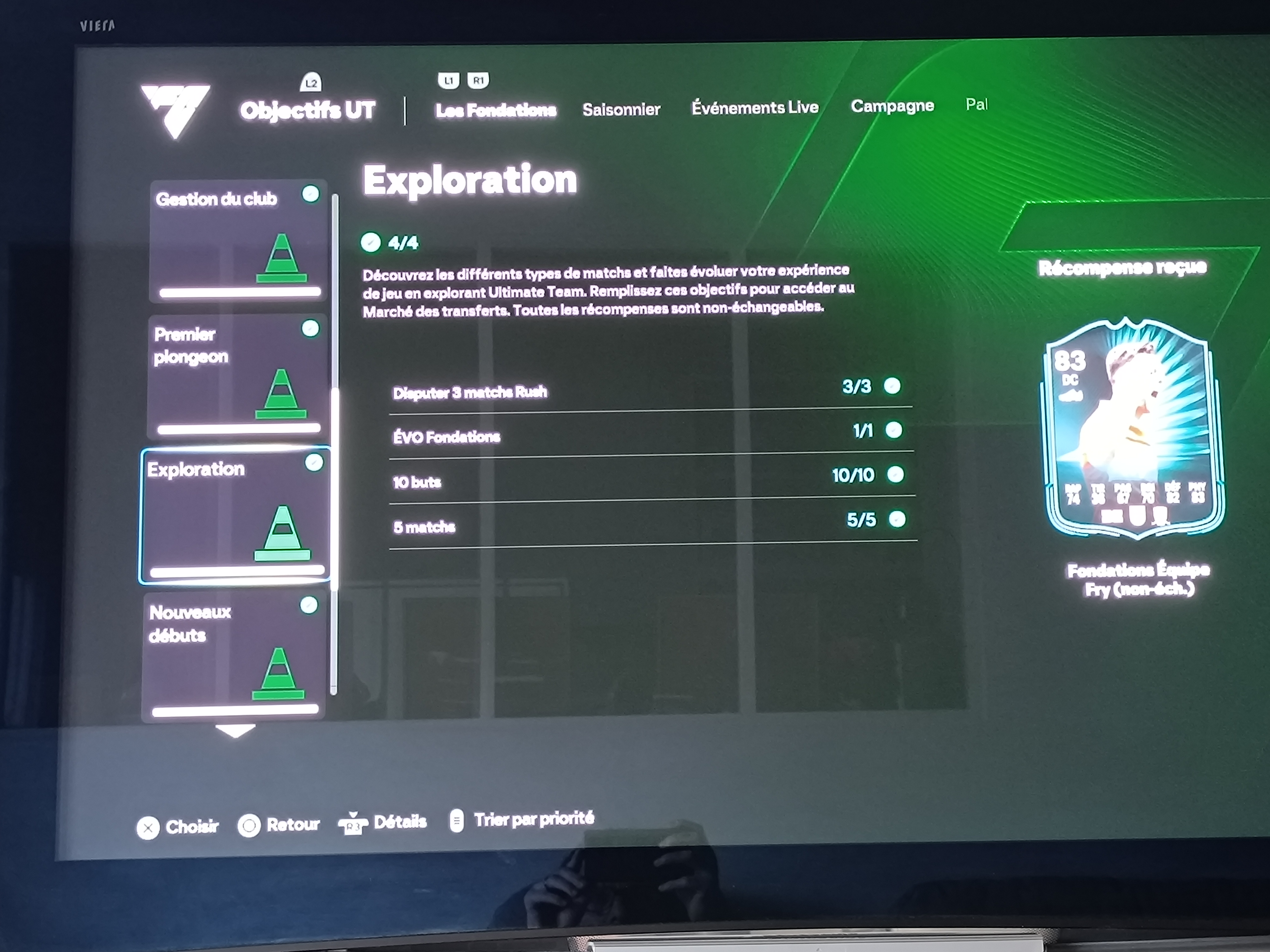 Dans les objectif fc 26 « les fondations » je complète « pro en devenir » qui demande de terminer tout les groupe d’objectif fondations mais après avoir fini « exploration » j’ai eu les récompense et la validation mais dans « pro en devenir » il n’es pas afficher comme remplis ce qui m’empêche de recevoir les récompense final HELP
