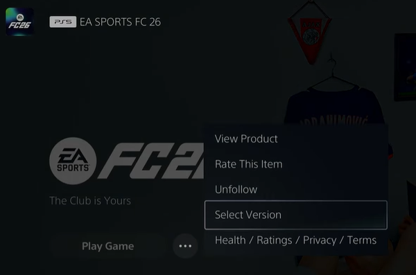 dovresti poter selezionare e cambiare la versione del gioco dall'interfaccia della tua PlayStation come mostrato nell'immagine di seguito: