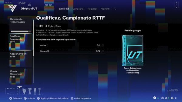 per favore condividi con noi le schermate di tracciamento delle partite relative all'obiettivo che sblocca l'accesso ad uno dei due campionati RTTF disponibili, come ti appaiono in gioco, per entrambe le sfide, che mostrano i tuoi tentativi esauriti del tutto.