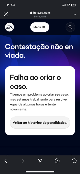 Apesar de agora após meu banimento ter o conhecimento sobre algumas diretrizes da EA, é complicado o sistema de contestação não estar funcionando corretamente, estou desde as 8 da manhã tentando fazer uma contestação e sempre dá erro, fora que acredito que seria viável não banir logo de cara e sim ao menos uma suspensão de algumas semanas ou 1-2 meses mas simplesmente banir alguém que não sabia dessa regra por uma edição inteira que acabou de lançar, sendo que todo ano o jogo vem full price? Sendo que 80% da comunidade só joga o UT, estou a 10 anos com a EA e sinceramente do último ano pra cá o descaso com o consumidor só aumenta….. triste isso