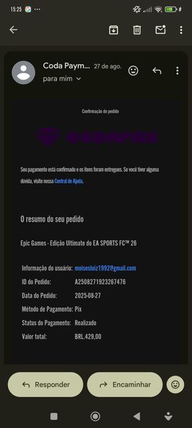Pessoal bom dia, minhas recompensas não caíram (FP, passe Premium, evo) estranhamente responderam que era pra verificar se entrei na conta correta e bloquearam o outro post, mas todas as minhas contas estão conectadas uma na outra, impossível ter ido para outra conta a recompensa, dessa vez vou deixar o print aqui para que verifiquem pra mim por gentileza. Estou extremamente decepcionado com a forma que estão resolvendo isso. Paguei 430 reais pra ter o jogo no acesso antecipado pela Epic games. Me Ajudem!