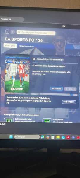 Ola MoisesBrZiN Poderia nos dar mais informações? Por qual App você joga e comprou o EA FC 26 ? ( EA App/ Steam /EPIC) Para informações adicionais dos os conteúdos acesse: LINK