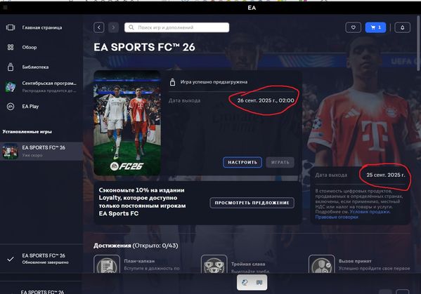 Доброго всем дня! Пишу сразу, платформа ПК, издание ЕА Апп. Кто-нибудь может помочь понять, когда всё-таки стартует стандартное издание? Везде почему-то дают разное время. В основном пишут про 25.09, в 15:00. Но в ЕА Апп самом показывается 26.09 0:00, также встречаются 26.09, 15:00. Когда в итоге-то? Помогите разобраться, плиз, кто знает!