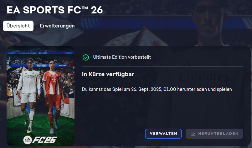 Problem: EA FC 26 Ultimate Edition nicht Downloadbar in der EA APP