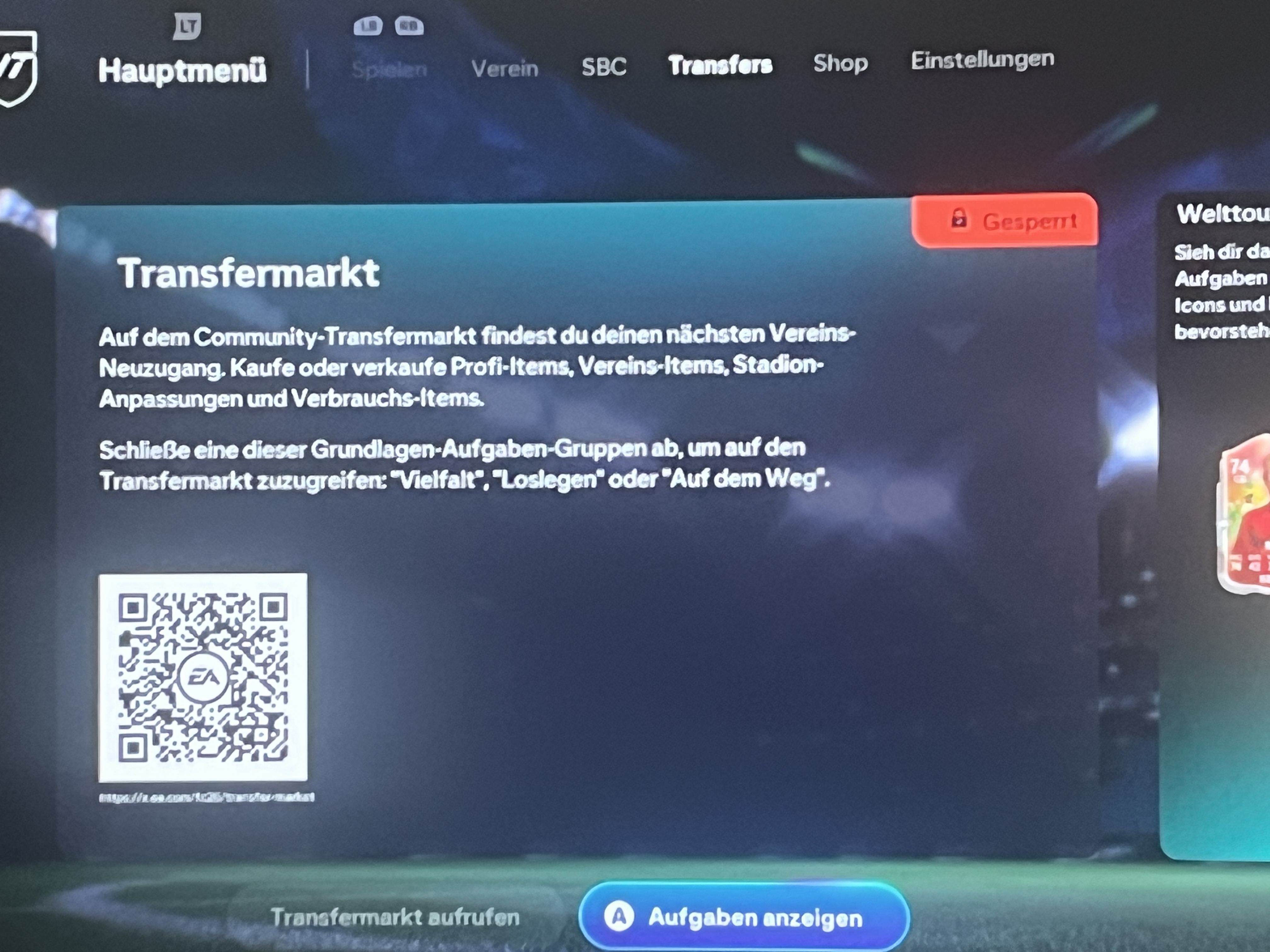 - Der FUT-Transfermarkt bleibt gesperrt, weil ich die Rush-Aufgabe nicht erledigen kann.