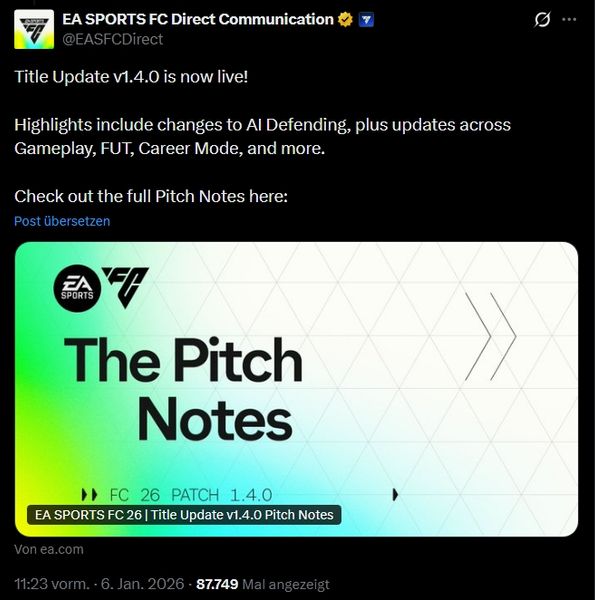 ich habe seit dem letzten Update ein Problem: Auf meiner Xbox wird das Update 1.4.0 nicht angezeigt. Das Spiel hängt weiterhin auf Version 1.3.0, wodurch FUT für mich unspielbar ist (weißer Bildschirm beim Laden) – mein Hauptaccount ist seit ca. einem Monat dadurch nicht spielbar.