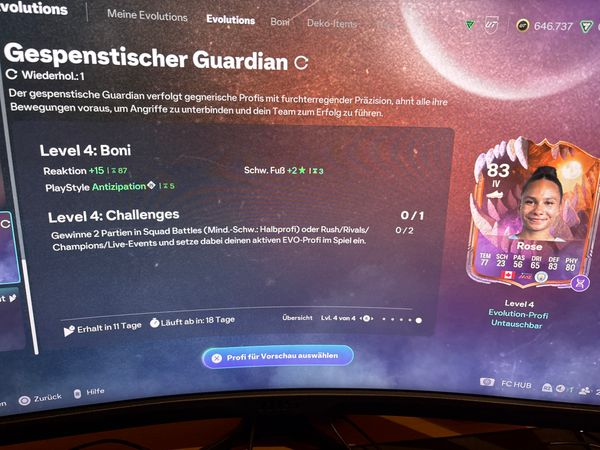 nach dem ich die Gespenstischer Guardian Evo abgeschlossen habe fehlt auf meinem Spieler der Antizipation playstyle.