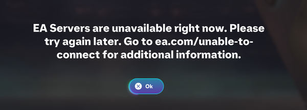 I am in Melbourne Australia and I can not connect to the servers. The only communication I can see is the EA x (twitter)  account mentioning there are issues in Northern America. I am in Australia, and have no issues logging into call of duty or FC 25 for that matter. What is going on, I would like to play the game I spend hundreds of dollars on.