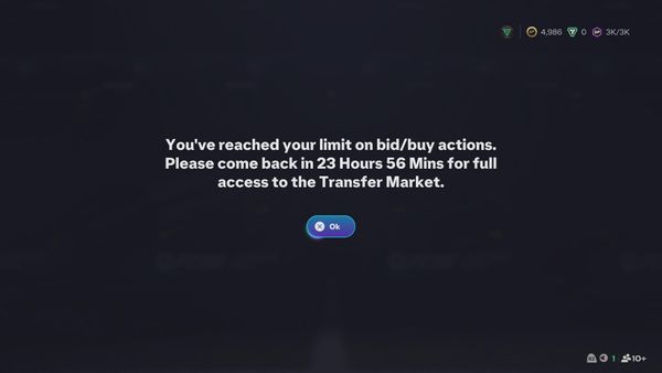 "You've reached your limit on bid/buy actions. Please come back in 23 hours 59 mins for full access to the Transfer Market."