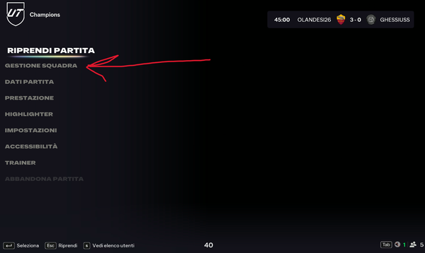 • Hello, while ingame , there is a bug, when i press "gestione squadra" nothing happen, menu blink for 1 second and return to the same menu.