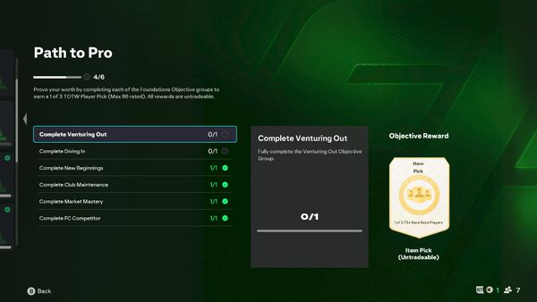 So I completed the foundations objective to unlock the player pick max 86 of totw and it doesn't let me claim it. It says I have to finish venturing out I think it's called but I already completed it.