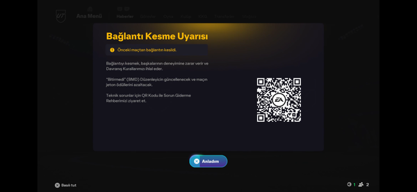 i was playing my 7th champs game and it was 2-2 in the 88th minute i scored and made it 3-2 and the match ended as normal but when the match ended it said ea servers cant help you right now or smth like that.it kicked me out.when i got back in it said that it counted as a loss???wtf ea?i checked my connection too and there was no problem but it still counted as a loss. please fix my game or it will be bad for me i will probably delete the game that i enjoy because of this stupid reason but there is nothing we can do i guess.i want compensation for this bs