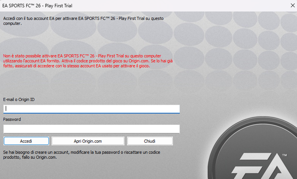 FC 26 activate error on PC with EA Play Pro