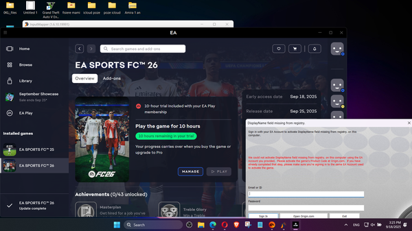 FC 26 activate error on PC with EA Play Pro