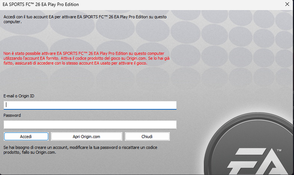 FC 26 activate error on PC with EA Play Pro