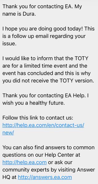 I just opened a TOTY promo pack at 7:30 pm on January 20th and I got a normal Vitinha card. Is he not a TOTY player right now? Very disappointing to say the least.